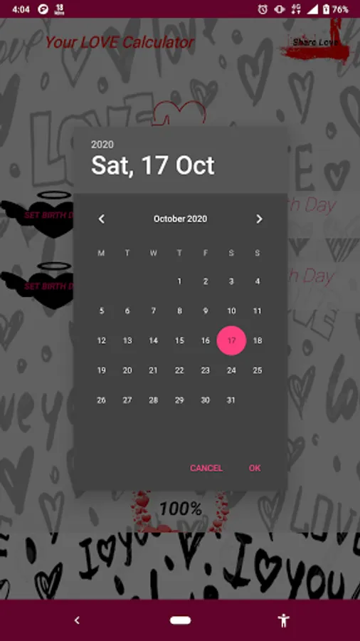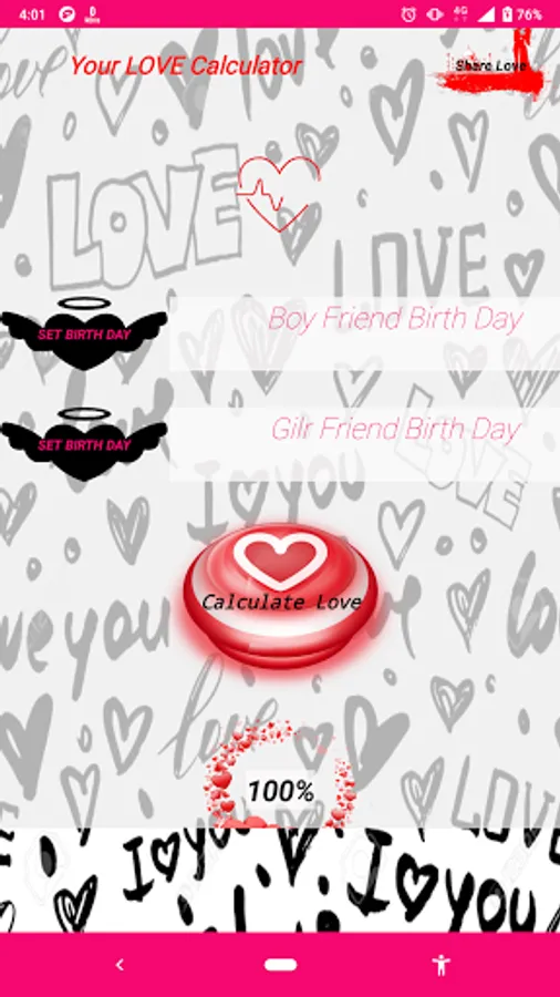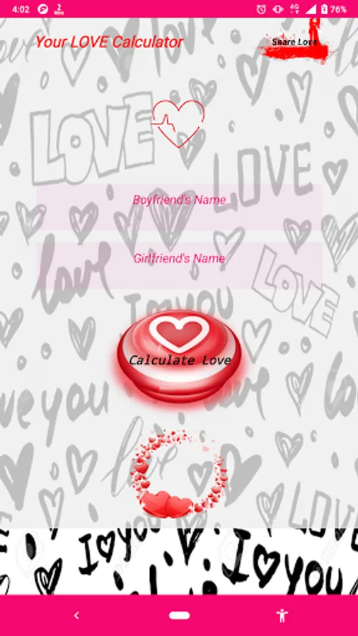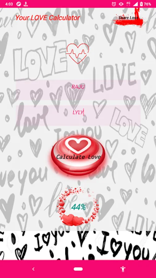 This app has the ability to match the names of the two as a percentage. It also has the ability to calculate whatever the two names are.