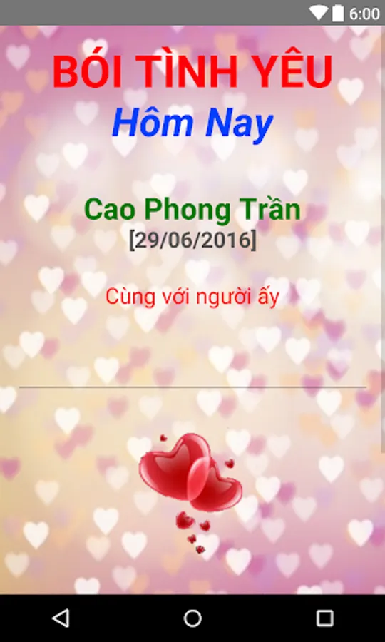 Dua vao Ho va Ten duoc cung cap, he thong se phat sinh que boi moi ngay cho ban cung nguoi yeu.