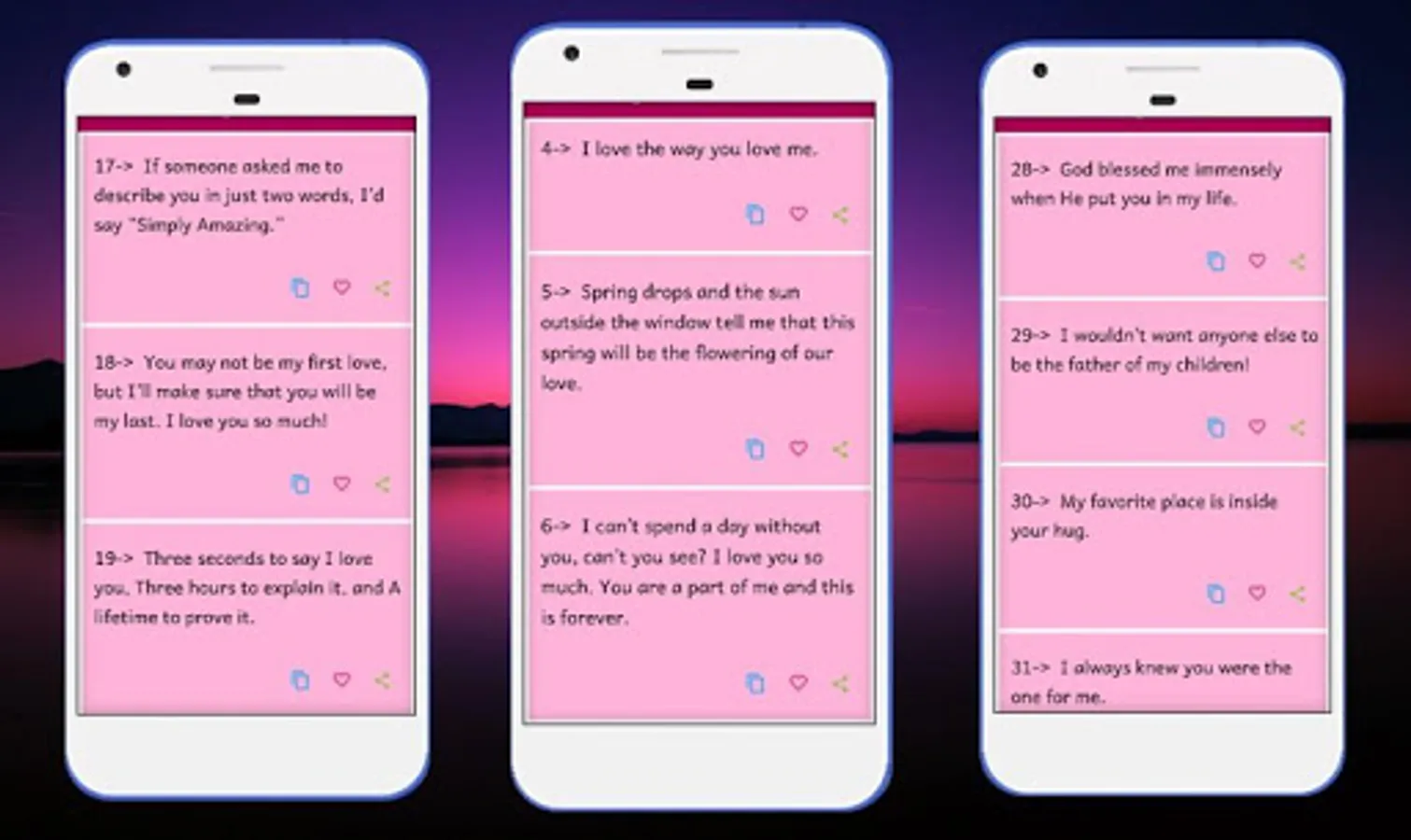 😘 Short Love Messages : In this App you will also find short love messages for him/her. Though men look so brutal and serious, they enjoy getting love quotes from their beloved ones. Various sweet love messages about love that you can find in this section will melt the heart of any man.