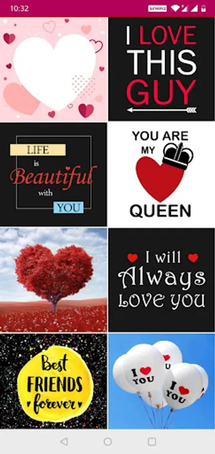 We have added HD Love Wallpaper also. You can find 1000+ HD Love Wallpapers. All Wallpapers are colorful having hearts, flowers, couples etc. You can set any love images as a wallpaper. In the Love images you will also find love stickers, love emoji, love couples images. All the images are sharable. So share these beautiful love images with your partner and make them feel special.