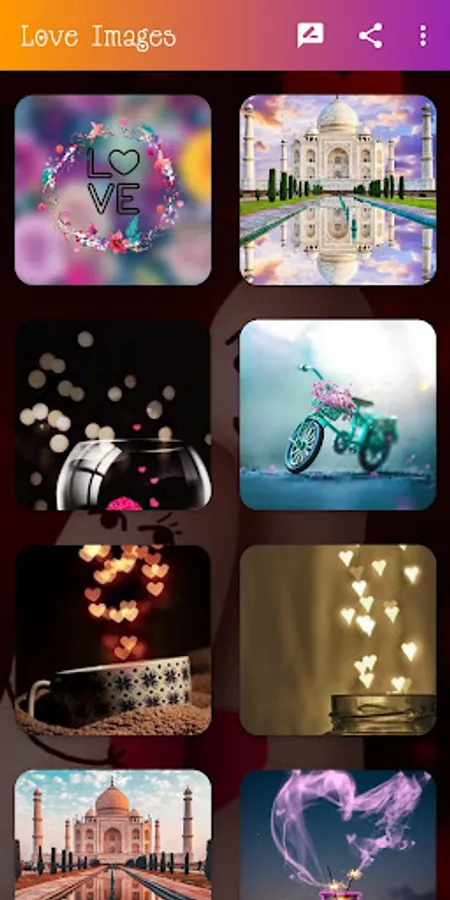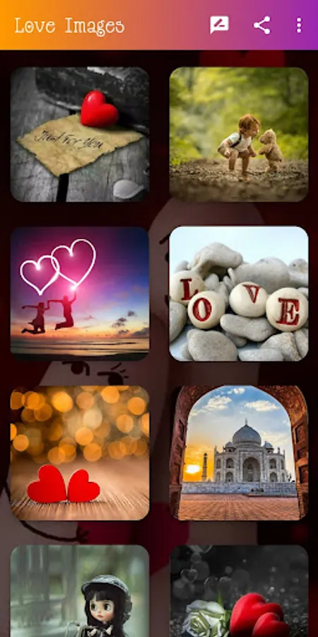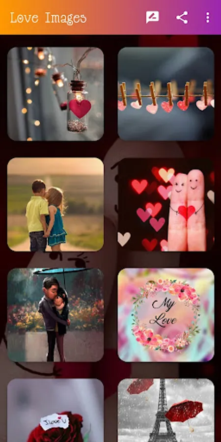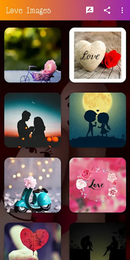You can also Share this "ππ Love Images : Romantic Images, Love Wallpapers ππ" App on Facebook, Twitter, Pinterest, Instagram, Email and Text Messaging