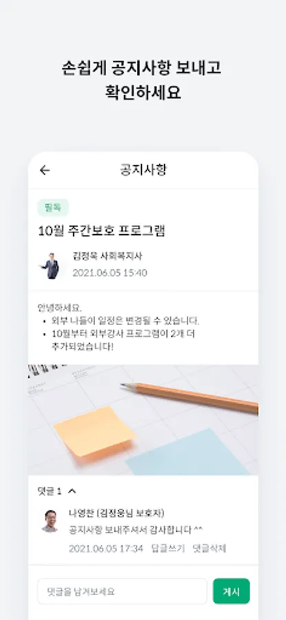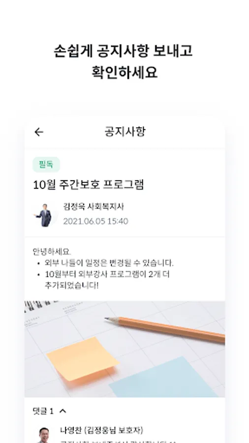 (1) Do not upload any more. Announcements on the band, notifications on KakaoTalk, inquiries by phone, and facility information on the website..? Now, solve them all in Today Care.