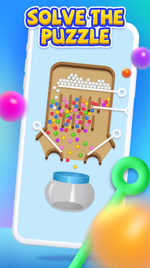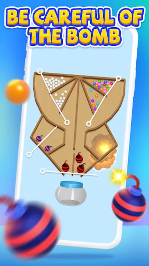 Pin Pull Puzzle challenges your IQ, logic, planning, and critical thinking with fun pin outs. Carefully pull the pin in the ideal order to guide balls into boxes. Avoid bombs destroying pin rescue paths! Gray balls must join colored ones to be collected. Complexity escalates each level, requiring thinking before you pull. Unlock creative pin rescue boards to design your own logic-based pull the pin puzzles. Test yourself against brain-twisters worldwide. Pull the Pin provides rewarding brain-training through pin outs!