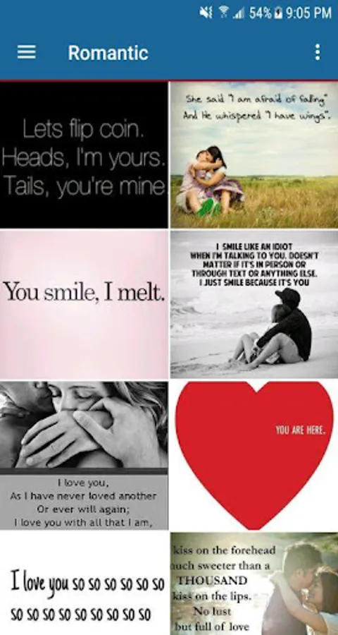 Want to send a really Romantic message to her or him, or update your social network status with a romantic love message? Finding the right words is a lot easier than it sounds. If you agree, this app is for you.