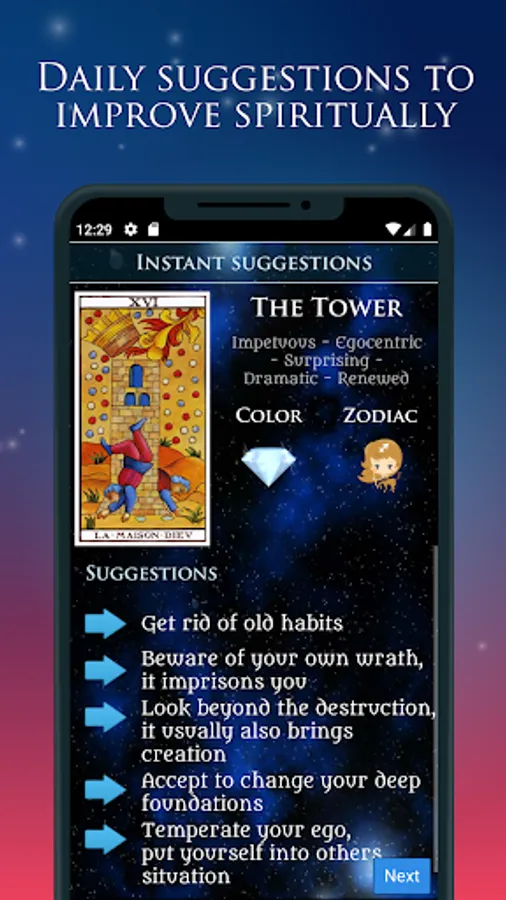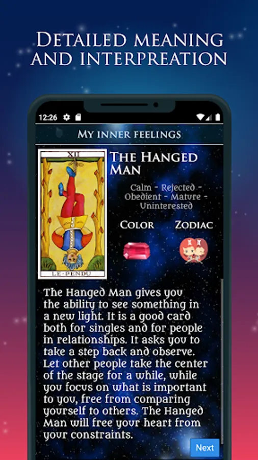 • Get extra info from your cards: keywords, colors and zodiac influence