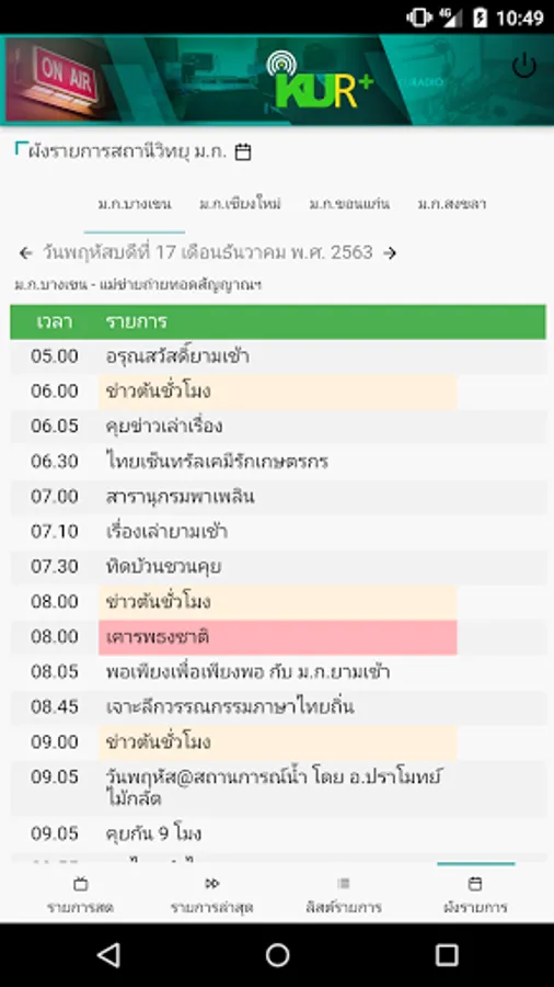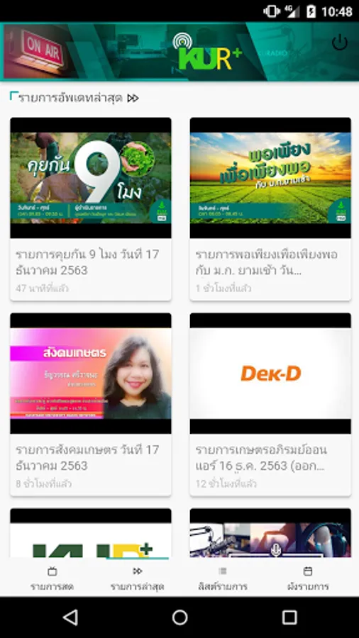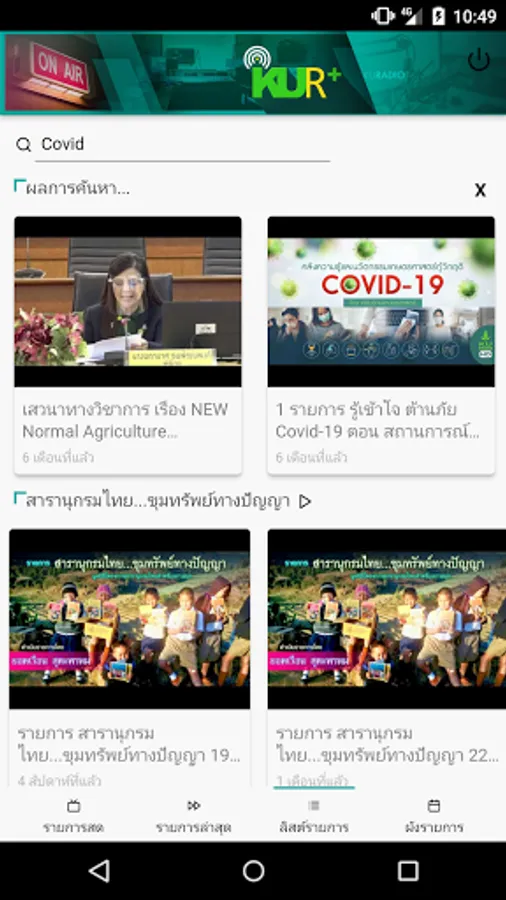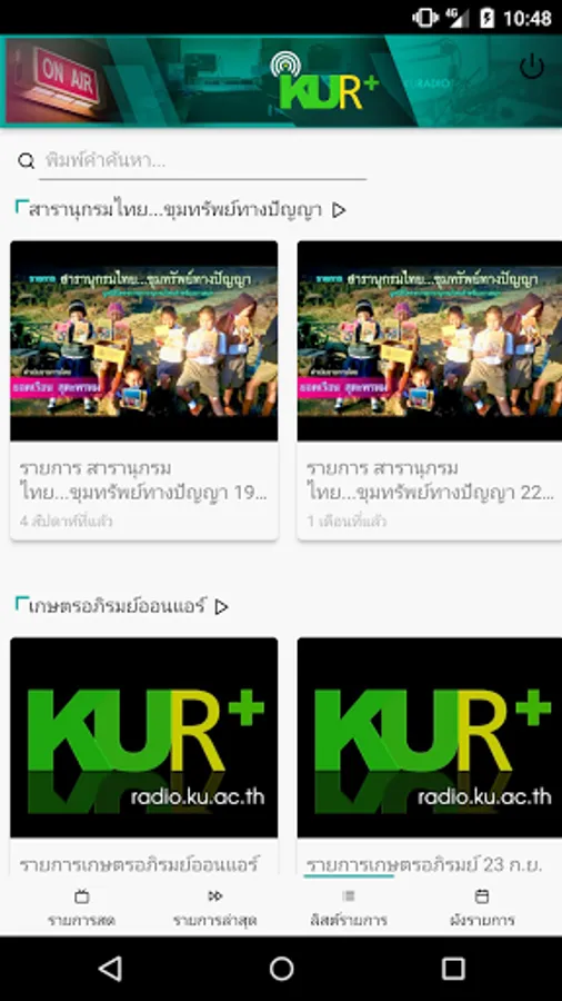 In addition to listening live via the website. http://radio.ku.ac.th/ mg Khen station has made an application to make it easier to access live TV and radio news shows. The concept at that. "The knowledge, technology and information society through a network of radio stations broadcasting. To improve the quality of life of the people. "