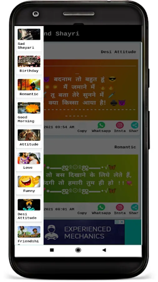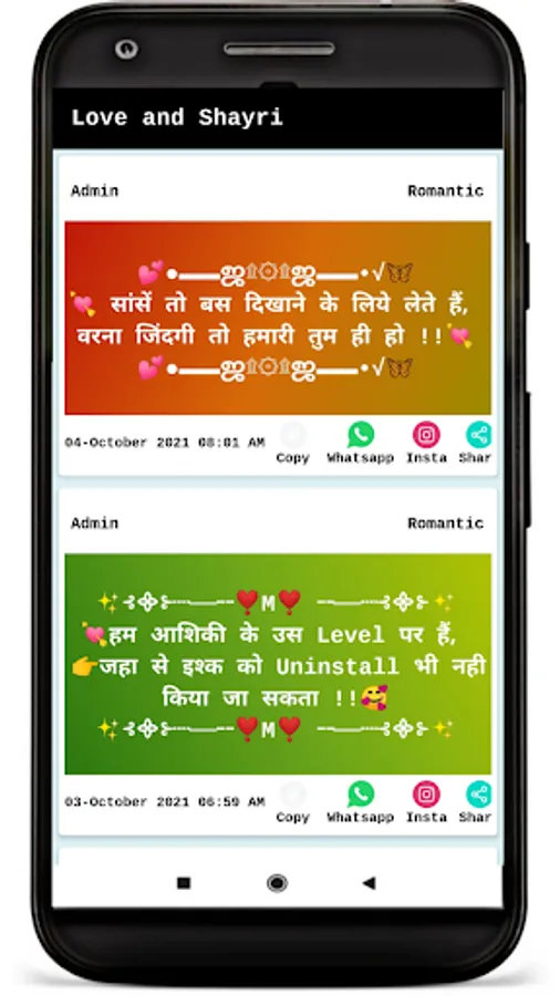 Love And shayari All In One Hindi Shayari app is a hindi shayari containe application. It is very easy to use and very colourful and all shayaris are available offline. This app brings all types of popular shayri categories like true love heart touching sher shayari broken and holi diwali wishes & shayri new year pyar bhari romantic hindi shayari love sad and images and photos Shayri Ki dayri.