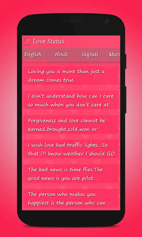This Application Provides User all New And Latest Love Status.