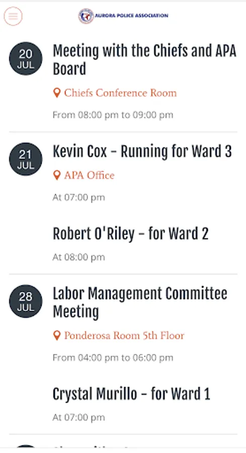 This app is for members of the Aurora, Colorado Police Association. It is intended to help members keep abreast of what's going on in their union and provide a method for two-way communication between membership and the executive board. Members can also receive alerts of critical incidents and other important news.