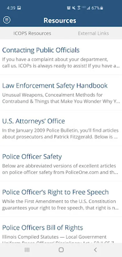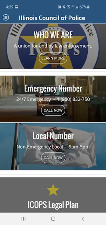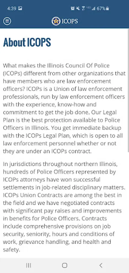 This app is intended as a communications tool between the leadership of the Illinois Council of Police (ICOPS), its membership and the citizens they serve. To that end, the app includes: