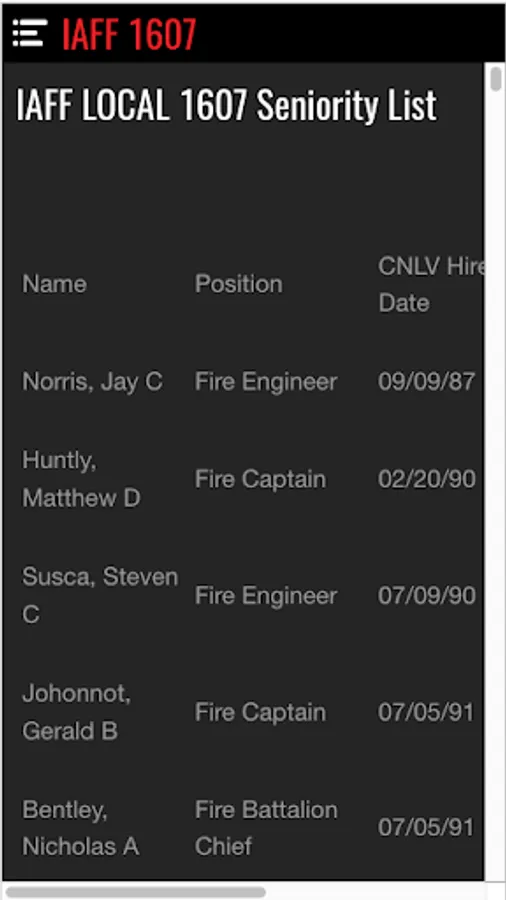 This app is intended for members of the North Las Vegas Firefighters Association, IAFF Local 1607. The app includes a calendar of events, links to important documents and external sites, the ability to message executive board members and push notifications.