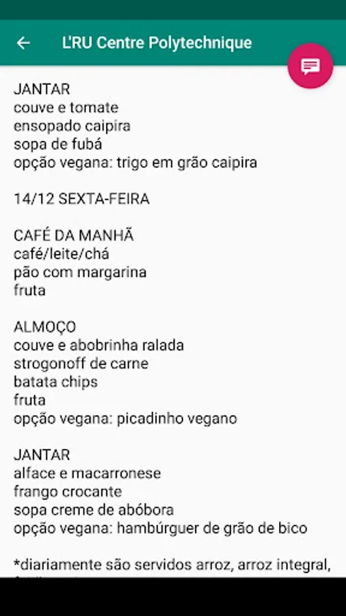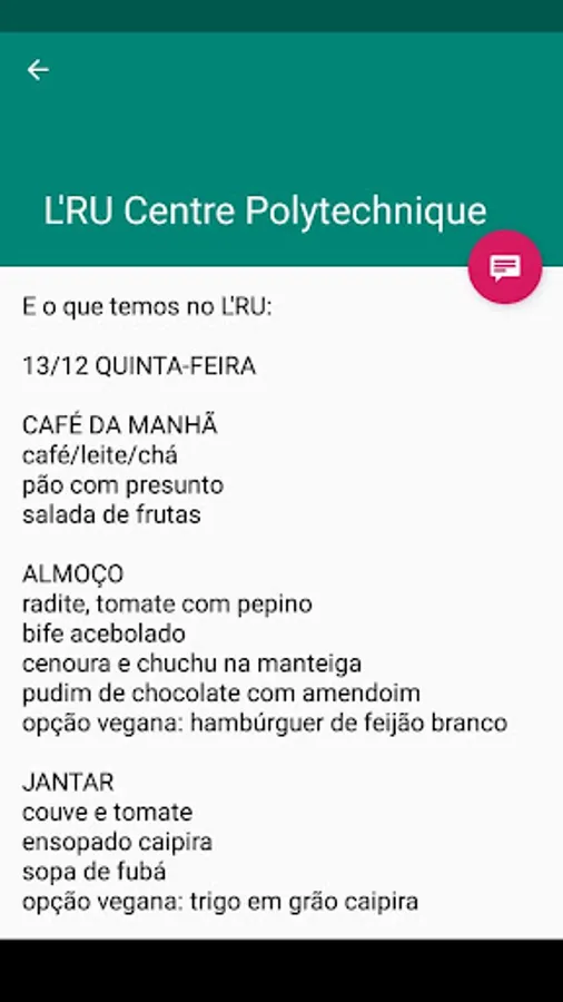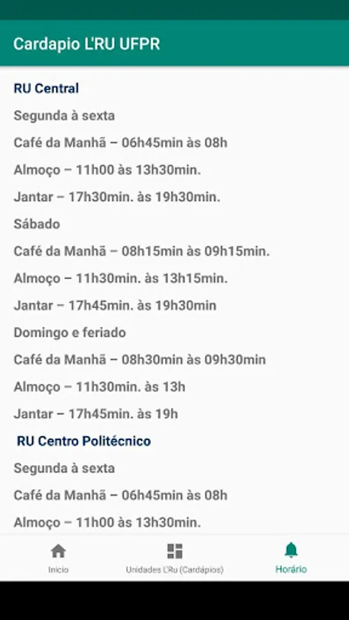 Cardápio RU UFPR - Restaurante Screenshots