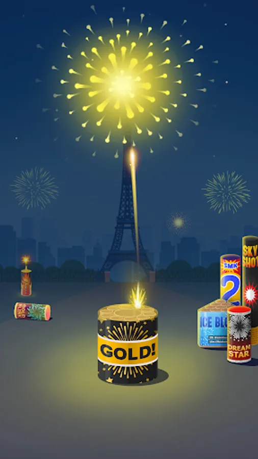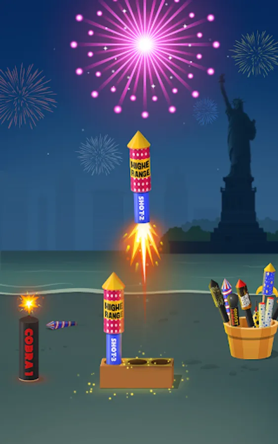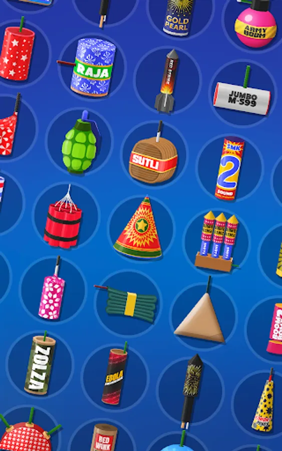 The objective of the game is to create a dazzling display of lights and sounds by lighting up different types of firecrackers. You can choose from a variety of fireworks, such as rockets, sparklers, and ground-based crackers & background themes. Each firework has its own unique effects, such as colorful explosions, crackling sounds, and even smoky trails.