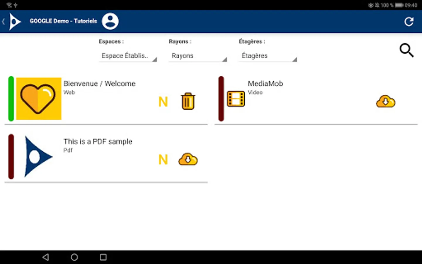 The MediaMob application is dedicated to companies and administrations that distribute media supports (audio, video, photo) to their employees. MediaMob is simple to use: each user has at any time his or her own personalised Mobile Media Library with content adapted to his or her needs. MediaMob embeds multimedia players: a single click is enough to view the content on any type of equipment: computer, tablet, smartphone. MediaMob technology respects the environment: data synchronization is optimized to guarantee reduced use of digital resources and therefore reduced energy requirements.