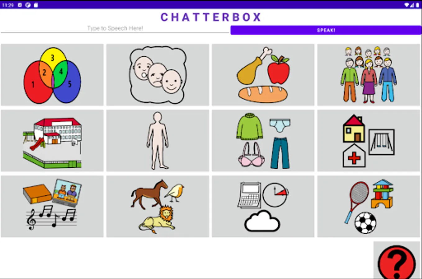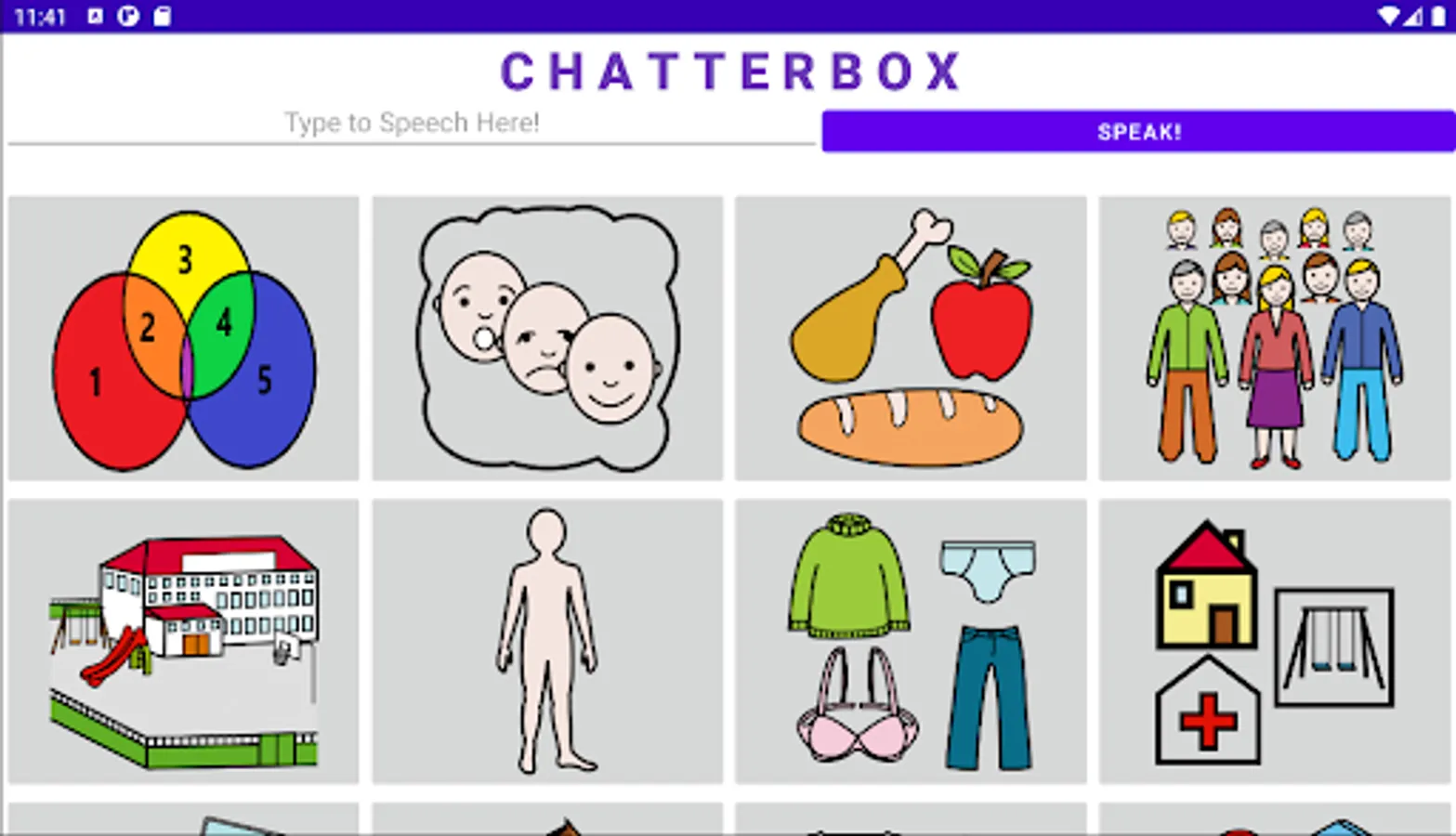 Communication should be easily available to all, and that's exactly what Chatterbox is aiming to do! A completely free AAC app, with no in-app purchases or advertisements, Chatterbox has twelve different communication boards with the option to add buttons using your own pictures and text.