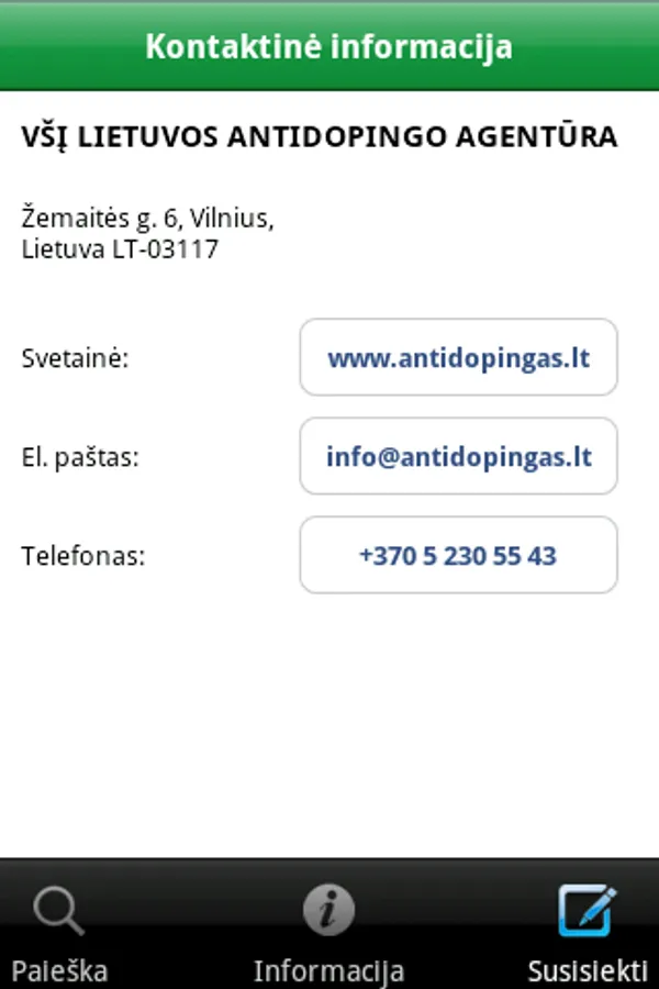 We recommend this application for athletes to find out whether a particular Lithuanian medicine is permitted or not.