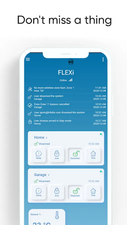 Receive real-time alarm status and arm or disarm your security system remotely. Get instant alerts in the event of a security alarm, or simply be notified when your family arrives home.