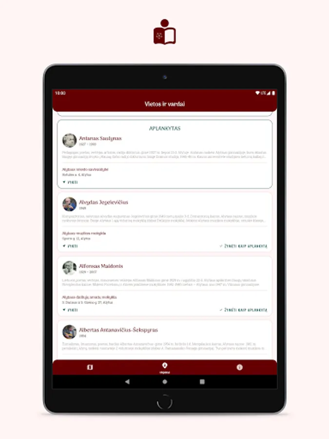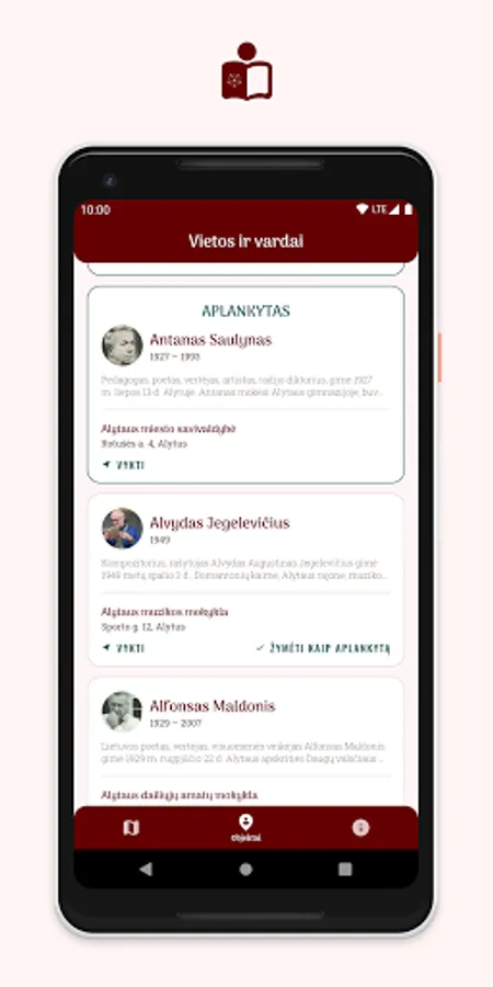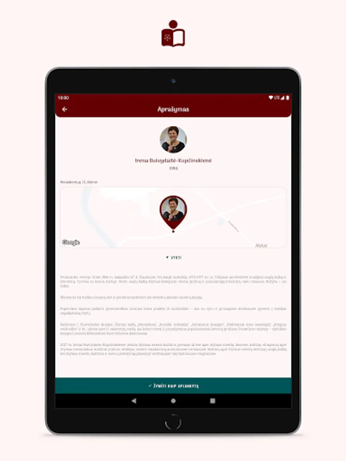You strayed into the literary Alytus. Here you can gain knowledge about the most outstanding writers and creators of this region, not only to impress the leg muscles, but also to do mental exercise, as you will have a quiz with a chance to win great prizes. You say too hard? Not at all! We will provide detailed personality descriptions, an informative map, and all you have to do is put on comfortable shoes and GO! Embark on a journey of places and names.