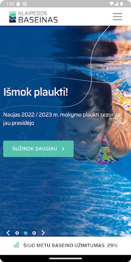 Klaipėda swimming pool is a multifunctional wellness center with the most modern 50-meter swimming pool in Lithuania, built in 2018. It is equipped with innovative swimming pool construction technologies - adjustable depth by moving the bottom of the swimming pool. The pool is adapted to various needs of citizens and professional athletes.