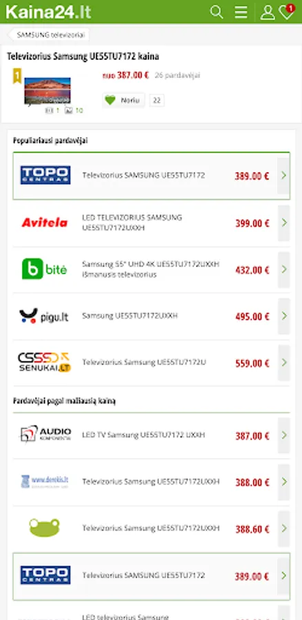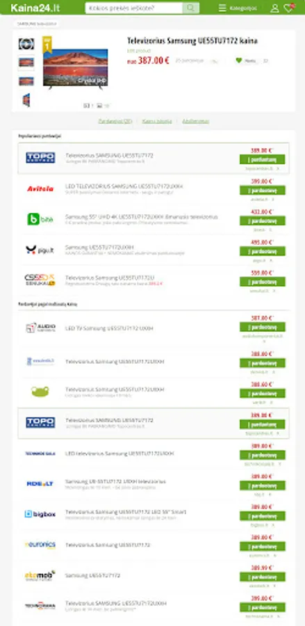 Kaina24.lt programėlėje rasite populiariausių Lietuvoje internetinių parduotuvių prekes bei geriausius kainų pasiūlymus. Populiariausios parduotuvės: