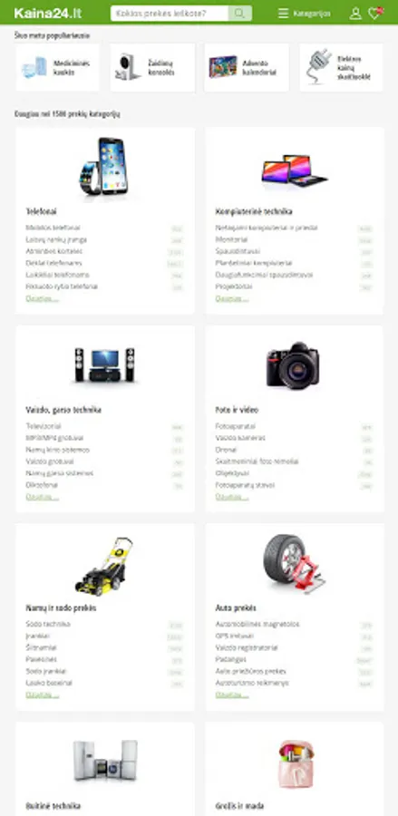 Programėlėje taip pat rasite įvairiausių kategorijų prekes. Tarp jų: