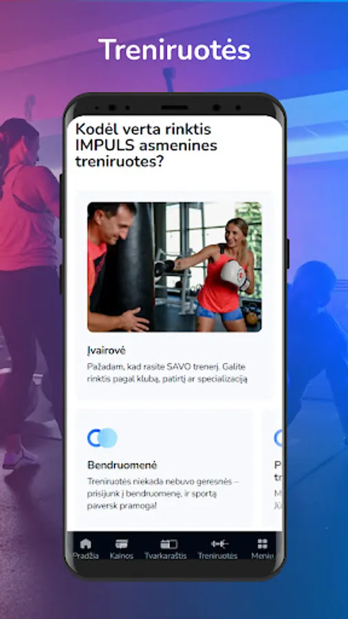 App for everyone who does sports in sports and health clubs IMPULS. In it, you can choose the desired IMPULS sports club, order a subscription, follow various events.