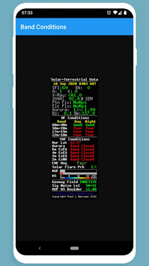 With this free app you can easily find current HF band propagation. Must have for any ham radio operator.