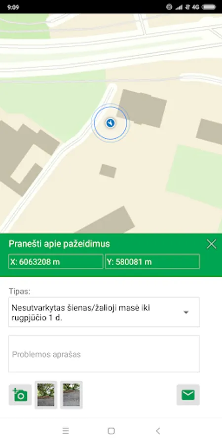 Information is provided by sending photos with x and y coordinates (geotag) directly from the area.