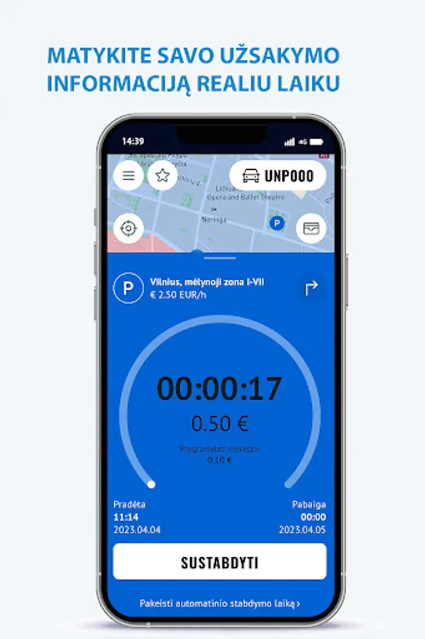 In closed parking lots, the app is activated as soon as you enter the parking lot and the car's license plate number is scanned. Then you no longer have to choose a parking zone, because the app identifies it for you. (This is how the app works in the parking lots of Vilnius Airport).