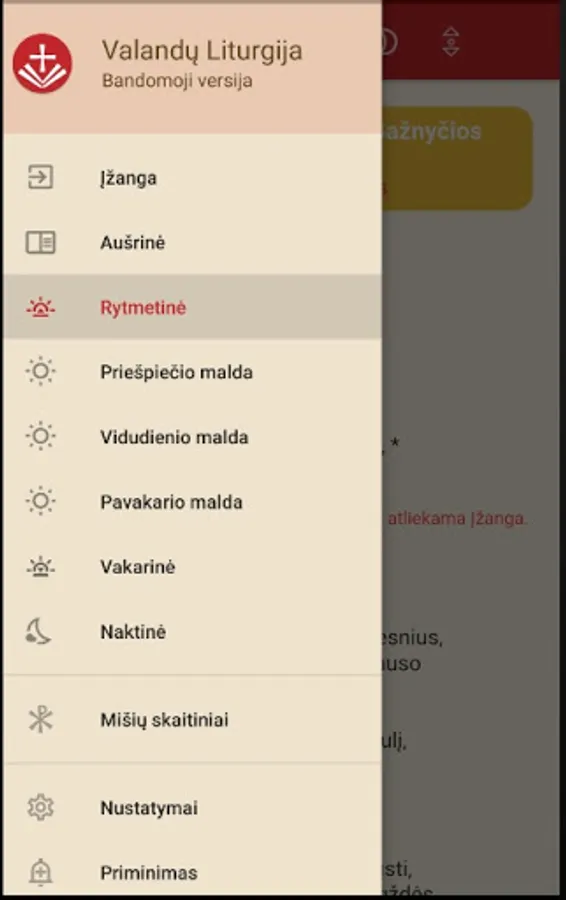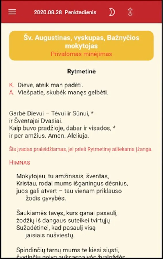 The Hourly Liturgy Program has been prepared in accordance with the Liturgical Calendar in force in Lithuania and has been adapted for the period of 2020–2035. The texts are taken from the official four-volume publication of the Lithuanian Bishops' Conference "Liturgy of the Hours" (2011–2016).