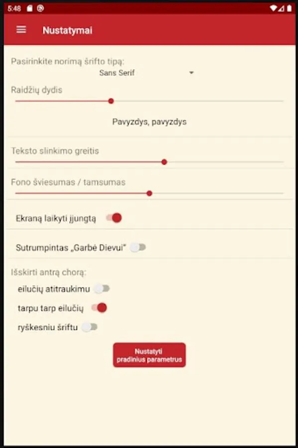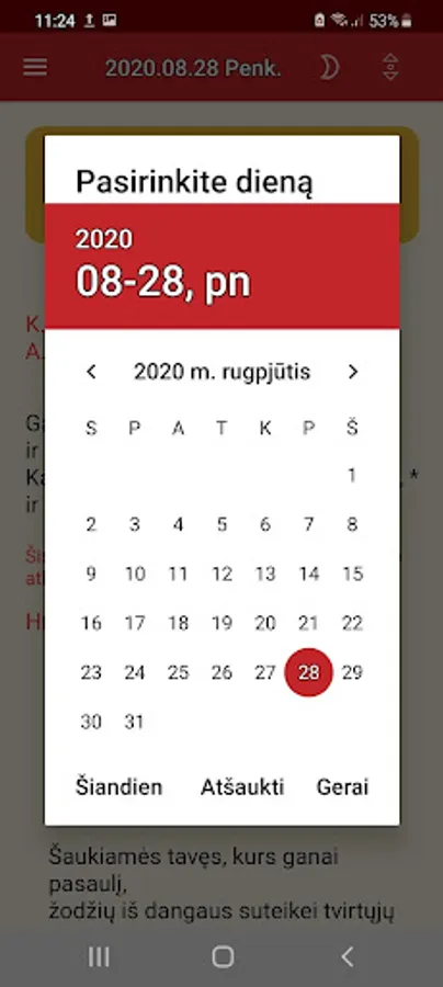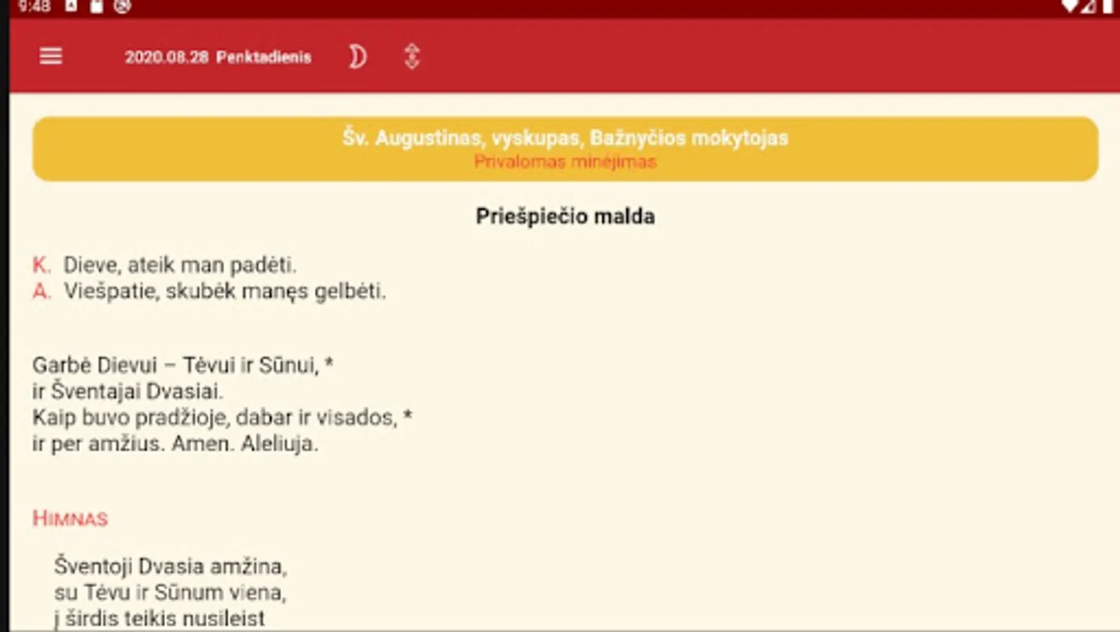 The program can be used without an Internet connection, except for Mass readings, which are taken from the website https://lk.katalikai.lt