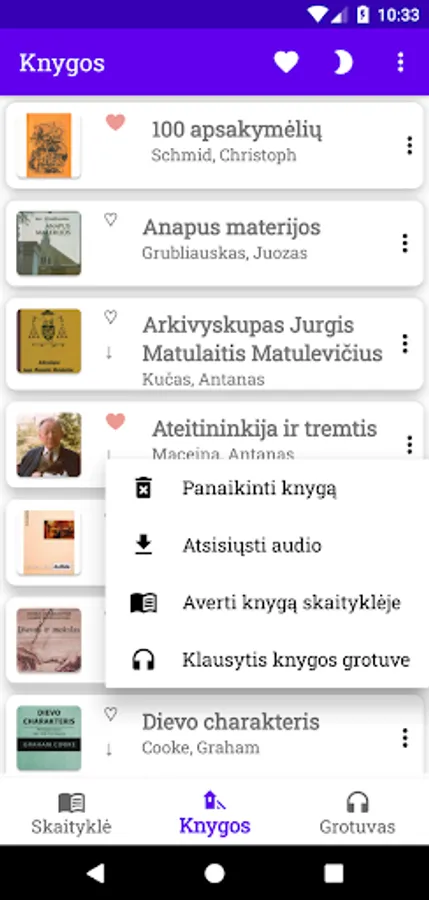 - add the book to the list of favorites by clicking on the heart, or remove it from it;