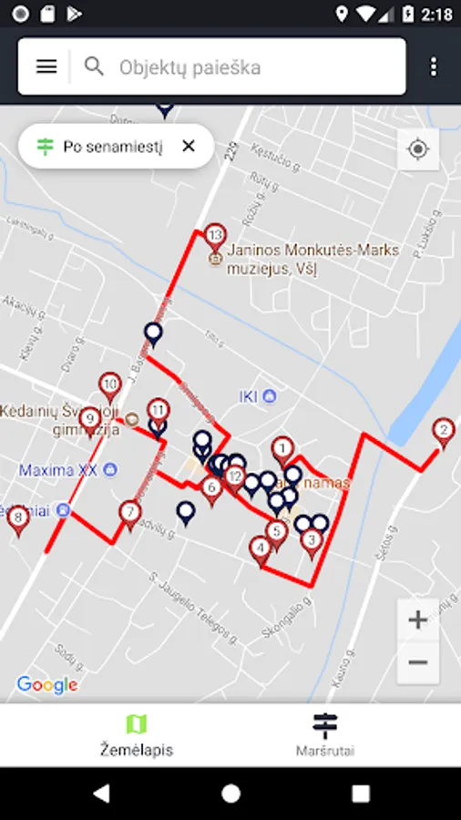 - pedestrian tourist route in Kėdainiai old town with must-see attractions