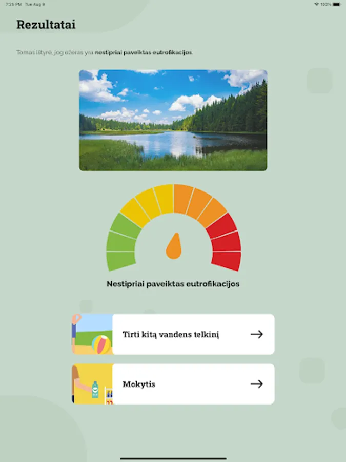 The mobile application "Lake researcher" is designed and intended for students and adults of all ages. Using the application, with the help of just a few clicks on the screen, you will get to know the flora and fauna of the lakes, explore the environment surrounding the lakes and find out how strongly the lake is affected by the eutrophication process.