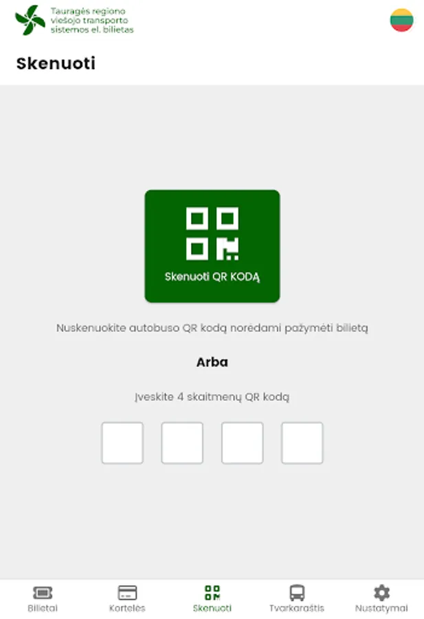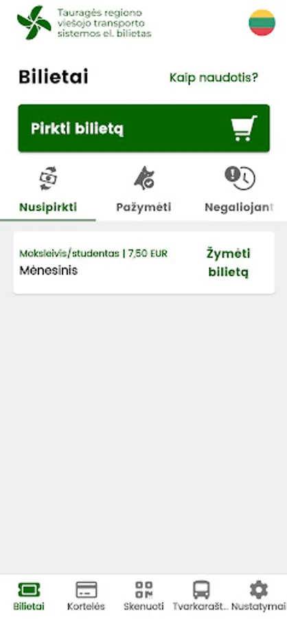 Using the app, you can quickly purchase, accumulate or activate Tauragė region public transport tickets
