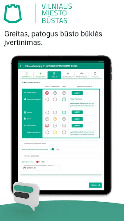 With this app, experts will be able to easily and quickly inspect housing. No paper or pen or camera will be needed, and the data will quickly appear on the central server at the touch of a button.