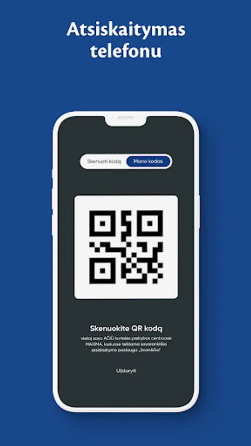 - mokėjimo metu tiesiog nuskenuoti QR kodą kasos ekrane