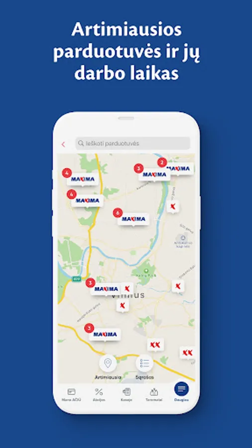 MAXIMOS programėlėje rasite kiekvienos dienos akcijas, specialias nuolaidas ir tik Jums skirtus asmeninius pasiūlymus. Pasinaudoję parduotuvių žemėlapiu ir nuorodomis, sužinosite, kaip greičiausiai nukeliauti iki Jūsų mėgstamos parduotuvės.
