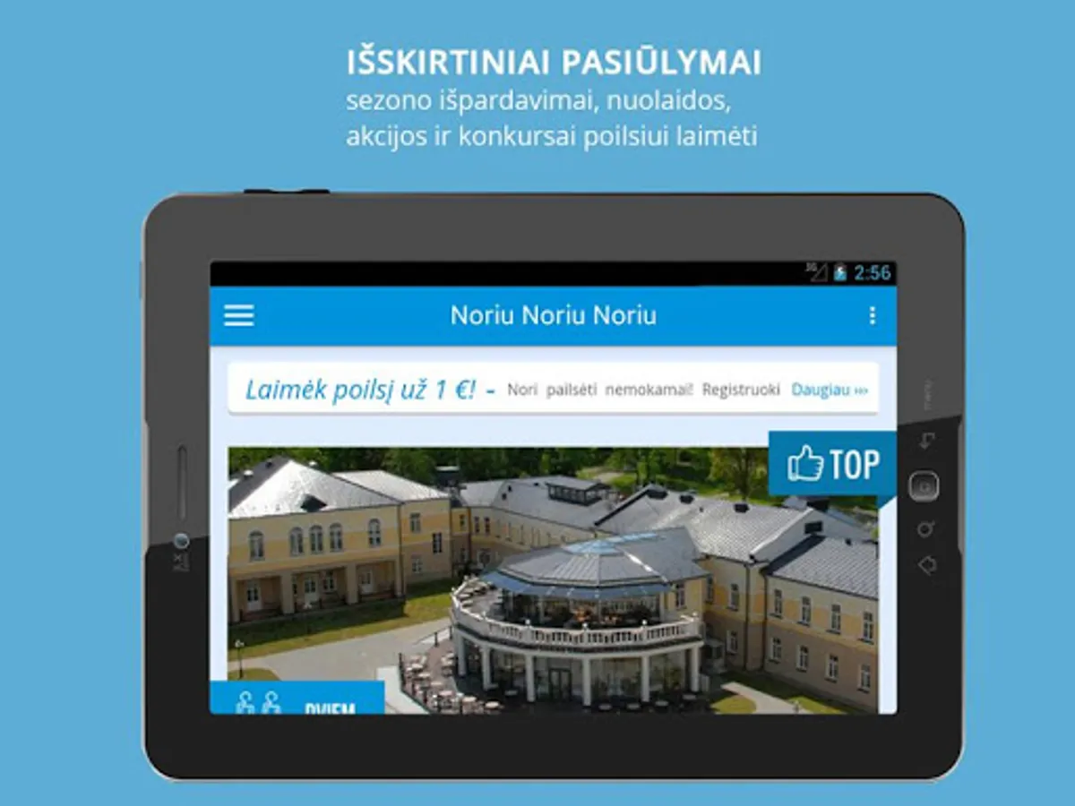 * Dideles nuolaidas bei akcijas kokybiškam jūsų poilsiui;