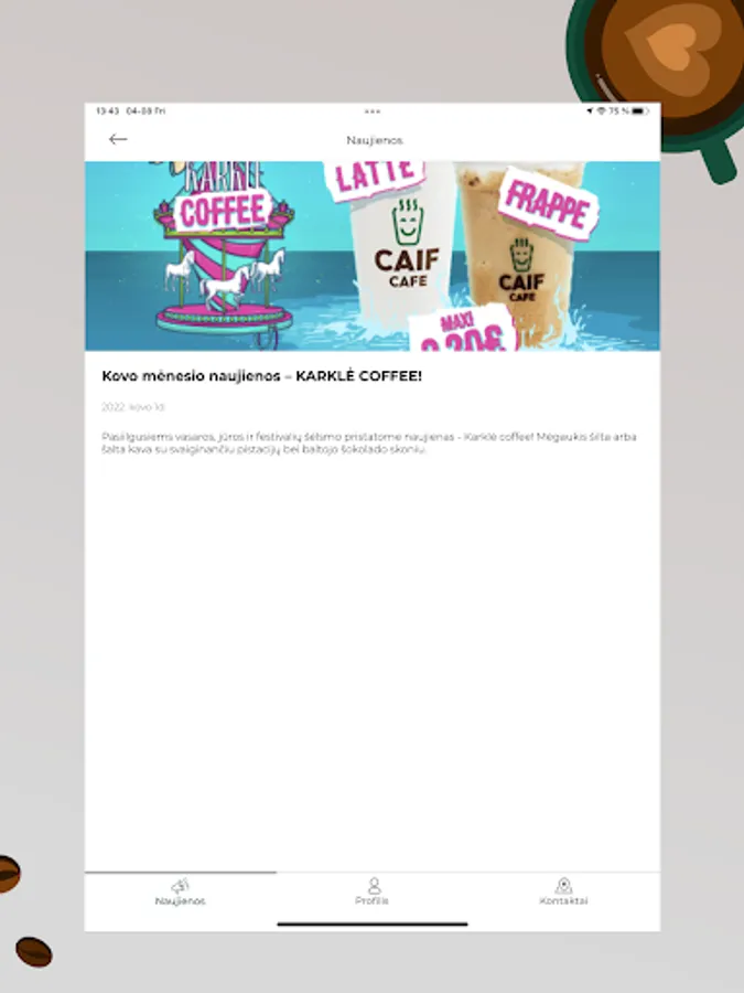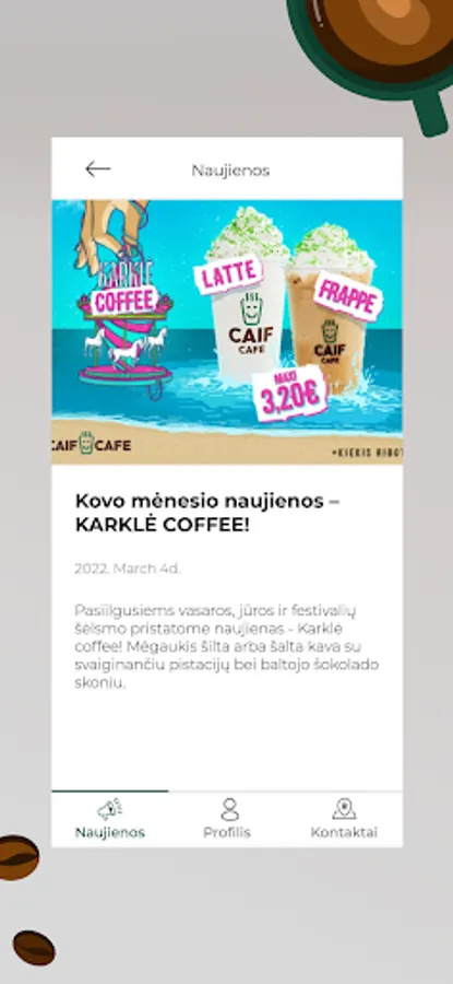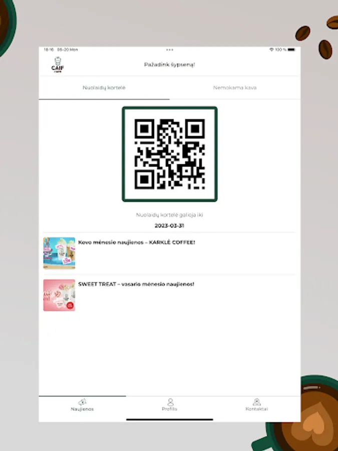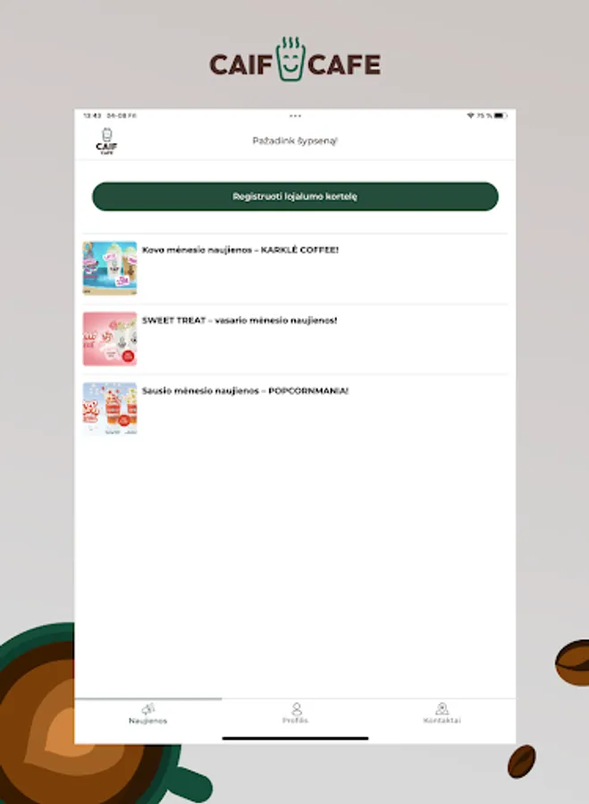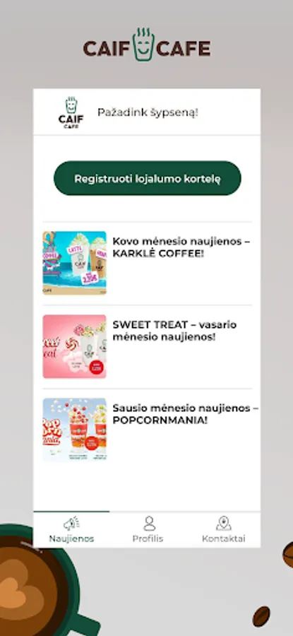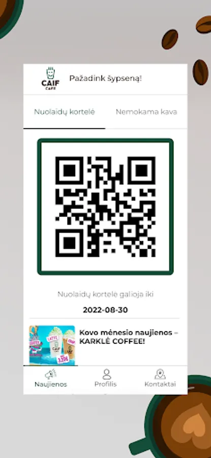 CAIF CAFE mobile app - loyalty card on your phone! After registering the card in the app, you will be able to use all its advantages: