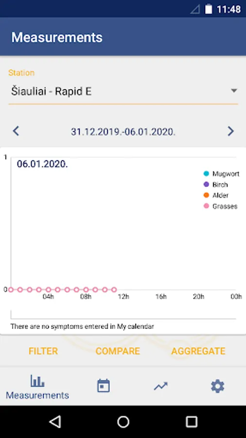 This application is part of the eHealth system developed by the project "Real-time measurements and forecasting for successful prevention and management of seasonal allergies in Croatia-Serbia cross-border region Croatia-Serbia" – "RealForAll" (2017HR-RS151). In collaboration with Šiauliai University aerobiologists, this application was adapted for use in Lithuania.