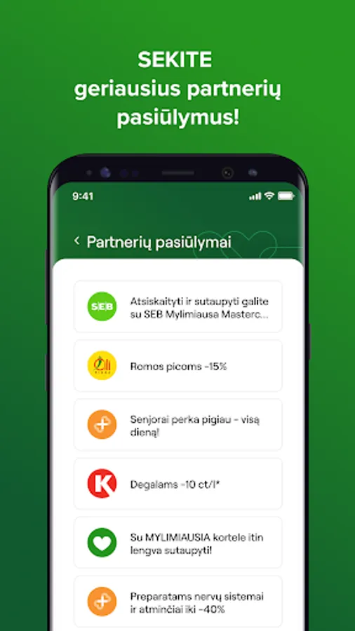 naudokitės virtualia lojalumo kortele Mylimiausia partnerių prekybose vietose. Užteks tik parodyti QR kodą ekrane ar priliesti banko terminalą telefonu;