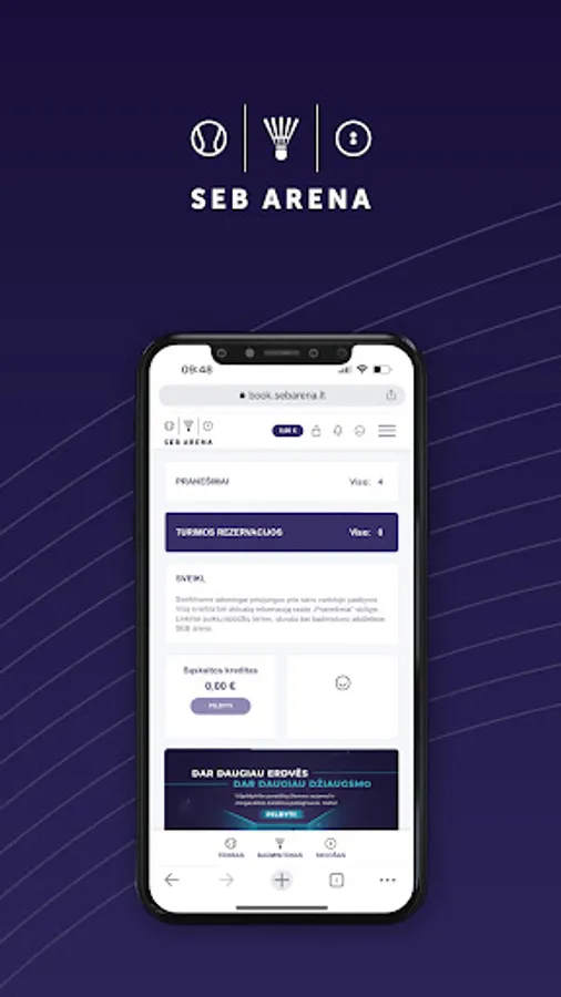 Atsisiųskite atnaujintą SEB arenos mobiliąją programėlę. Naudodamiesi ja: