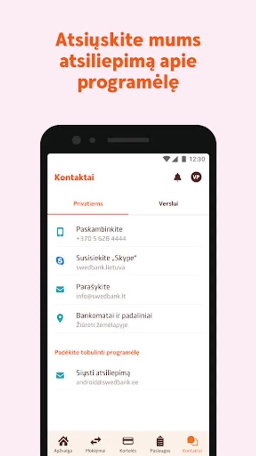 Both private & business customers can easily view their account balances & statements in app, use widget to check account balance, manage their cards, receive push notifications, enter internet bank without second login & access other banking features. Swedbank app provides all types of payments, including Google Pay & payments by phone number. Private customers can track their expenses & income in “My Budget” tool & start saving with Easy saver; corporate customers can access & manage their Smart terminal.