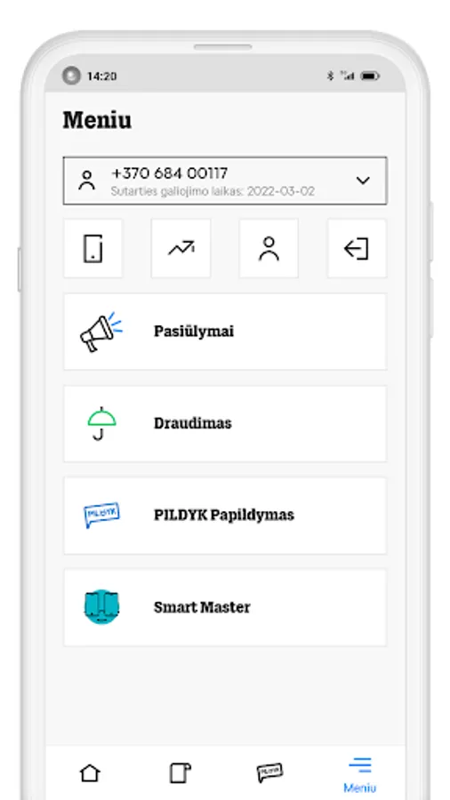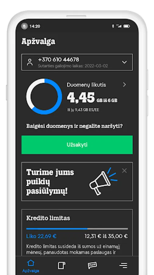 - View SMS and call minutes, the balance (if available in your payment plan offers unlimited calls and SMS, this information will not be displayed);