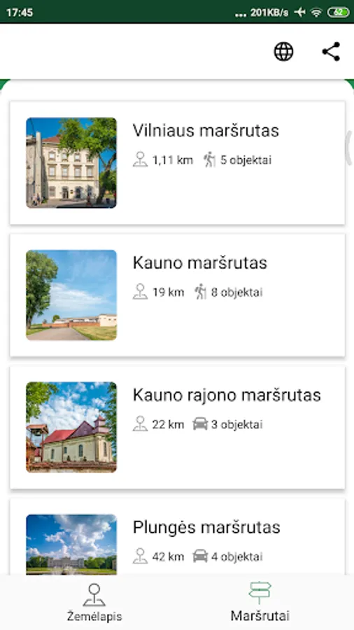The "Roads of the Capitals" mobile application is a guide to the Roads of the Capitals on your smartphone. In the app you will find routes divided according to six locations - Vilnius, Kaunas and Kaunas district, Plungė, Telšiai and Trakai, and objects assigned to routes. In the interactive map you will find places of interest divided by categories (mounds, manors, etc.), information about them and their coordinates. We invite everyone to try the app and discover the legacy of Lithuanian capitals.