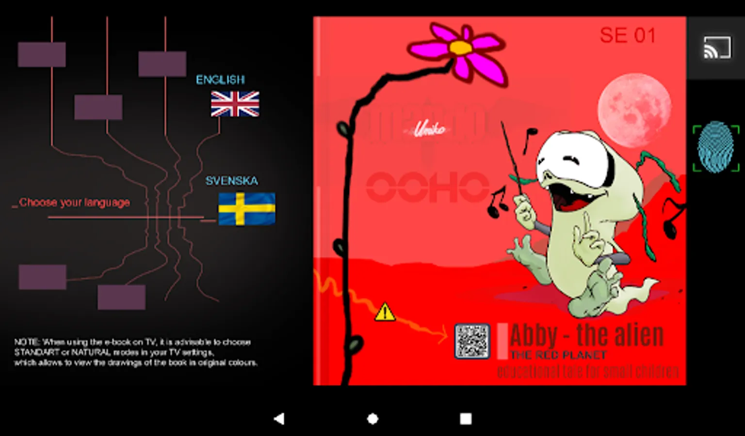 It is recommended to stream the book from your phone to the TV by using ‘Screen Mirroring’. The app can also be used on tablets.