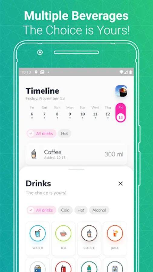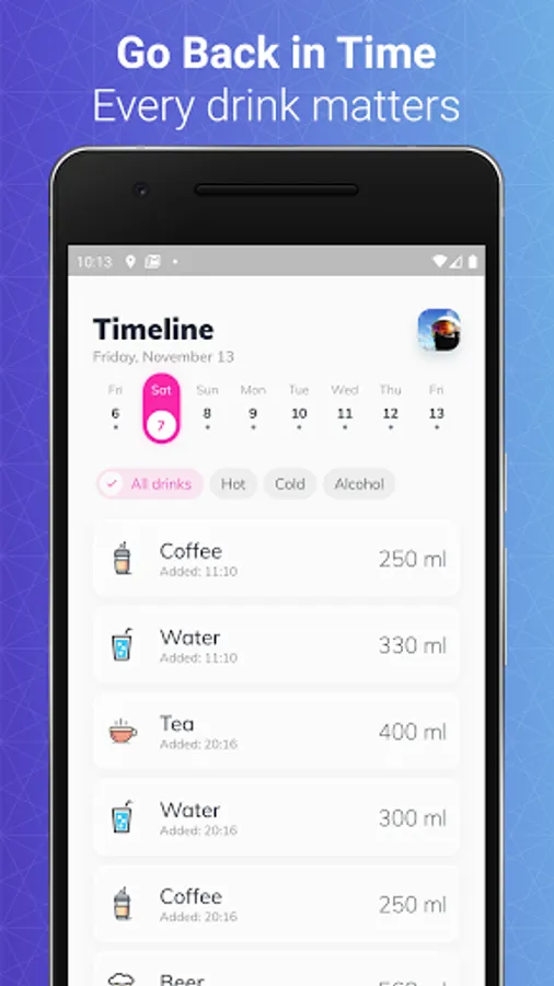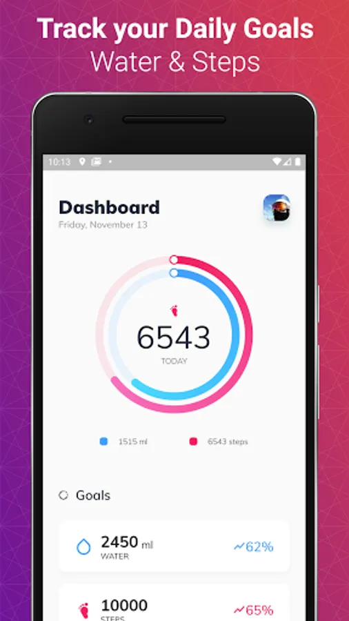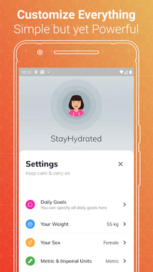 Stay Hydrated simple but yet powerful app that helps you to drink enough water and other beverages every day and turns your phone into a simple step counter.