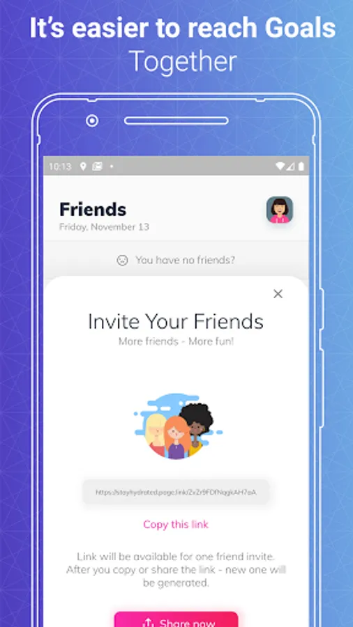 • Visualise data from your Google Fit account. Stay Hydrated app automatically merges data from your Google Fit and calculates walked distance using your step length.