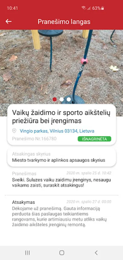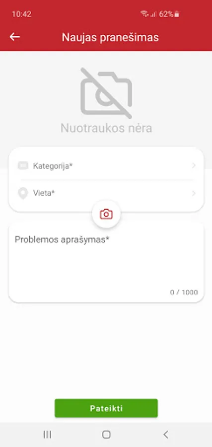 Programėlė, jums leidus identifikuoja jūsų lokaciją ir leidžia pridėti nuotrauką prie pastebėtos problemos.